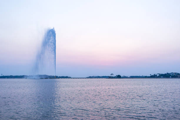 King Fahd Fountain is a huge sea-water fountain located just off the coast of Jeddah. It shoots a continuous jet of water that can reach over 300 meters in height, making it one of the tallest fountains of its kind in the world.