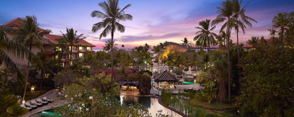 - Grand Hyatt Bali – مسابح كثيرة، حدائق خضراء، وغرف واسعة؛ مناسب لعائلة تحب قضاء وقتها داخل المنتجع.